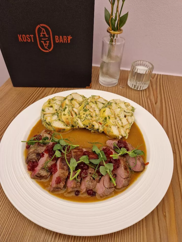 Wildschweinrücken mit Hagebuttensoße, Semmelknödel nach Karlsbader Art | 18,90 €