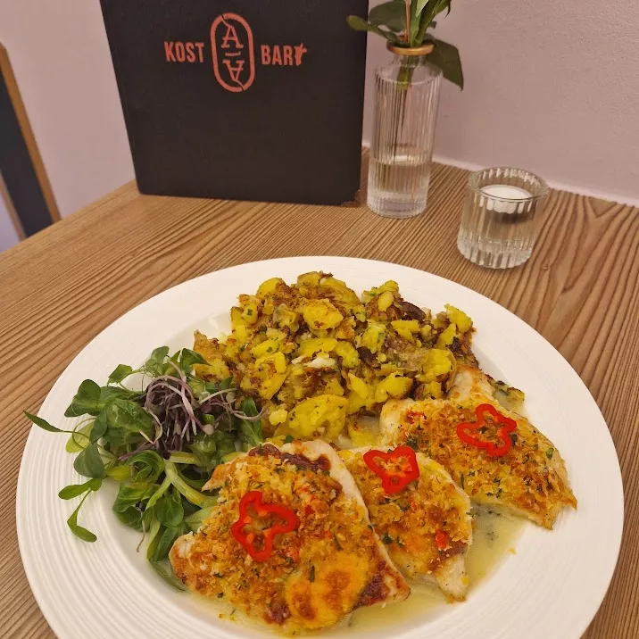 Pollo en Salsa Verde mit Kartoffelrösti gegrillte Hähnchenbrust mit italienischer Kräutersauce | 18,90€ | |